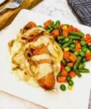 Bangers (pork sausage) & mashed potatoes with veg.